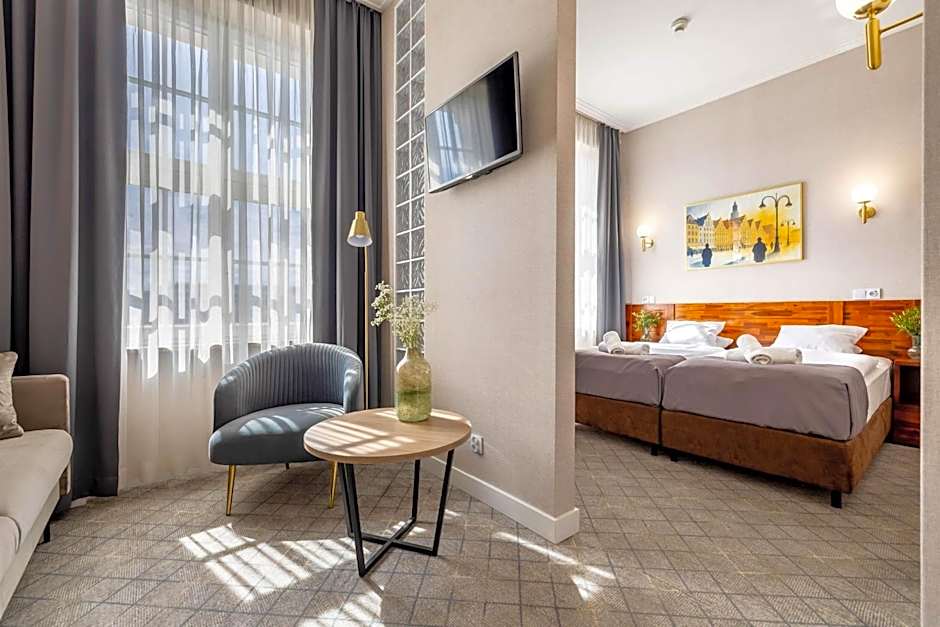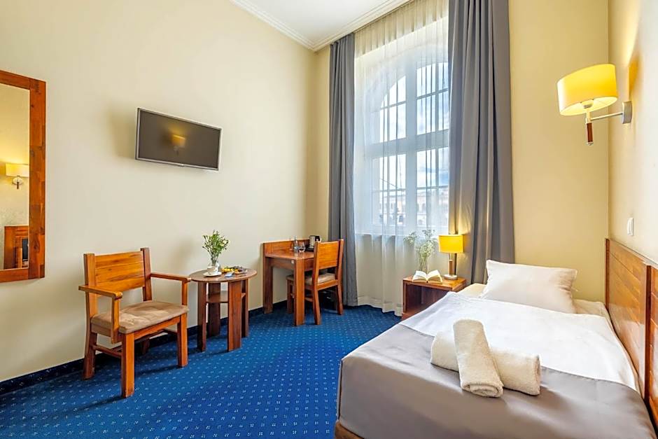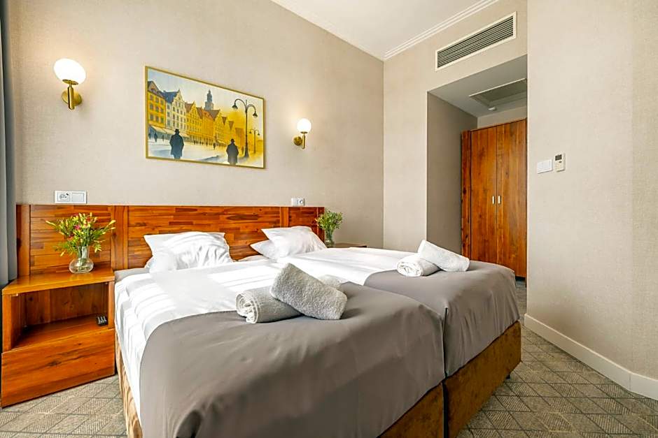 This spacious double room features a large bathroom and a view of the historical Main Railway Station. .